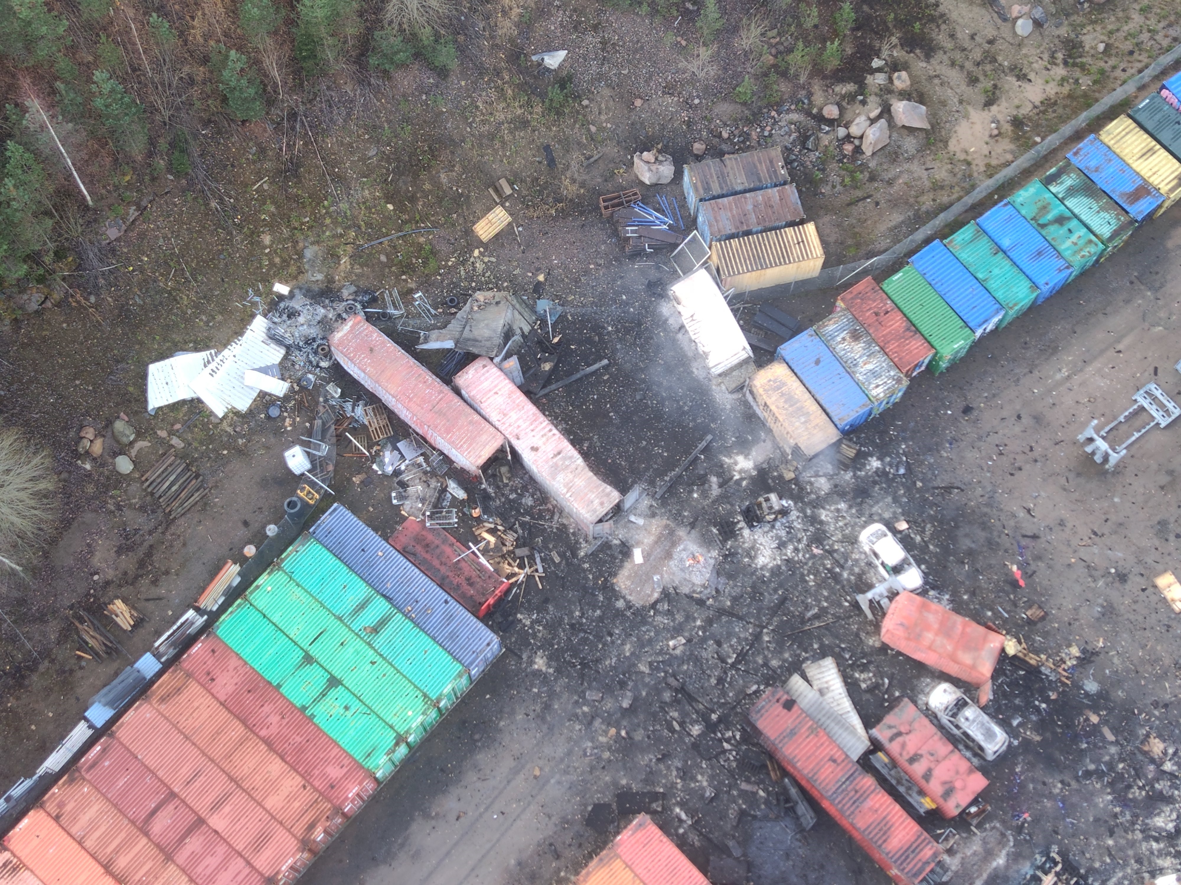 Tulipalo levisi räjähdysmäisesti varastoalueella useisiin kontteihin. Paikalle hälytettiin useita pelastuslaitoksen yksiköitä. Varotoimena lähialueelle määriteltiin jopa kilometrin laajuinen vaara-alue ja alueen asukkaita evakuoitiin.