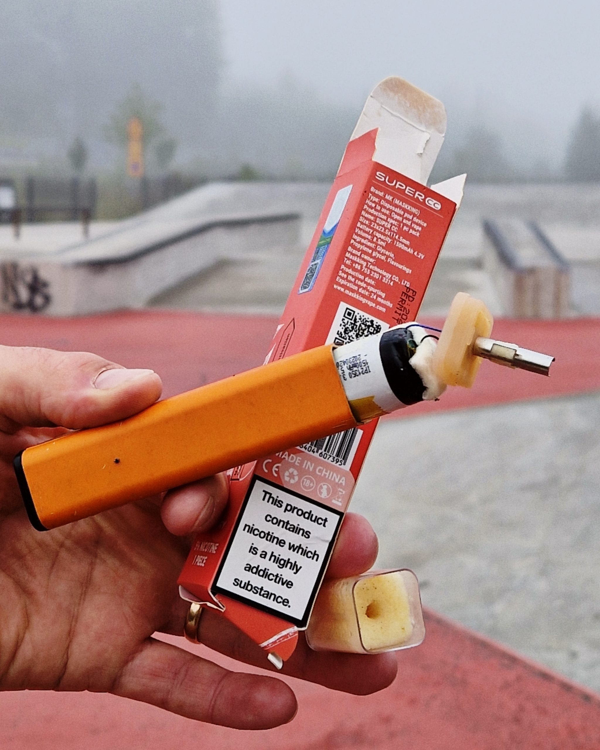 – Vaperoskia löytyy luonnosta päivä päivältä enemmän. Monesti tulee vaikutelma, ettei sähkötupakoita ole edes yritetty viedä roskikseen: Ensin löytyy pahvinen pakkauslaatikko, sitten vähän matkan päästä muovinen kuori. Kyseessä on kuitenkin myrkyllinen roska ja todellinen ympäristöriski, joka ei kuuluisi edes sekajätteeseen, vaan tulisi kierrättää! Sosiaalisessa mediassa Roskapäivä-Einona tunnettu Teemu “Eino” Oinio sanoo.