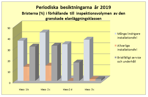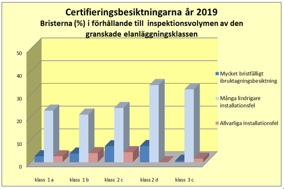 Förra året konstaterades allvarliga installationsfel och -brister i vart 28:e certifieringsbesiktat installationsobjekt (2018 i vart 30:e) samt i ca var 8:e periodiskt besiktad elanläggning (2018 i var 7:e).